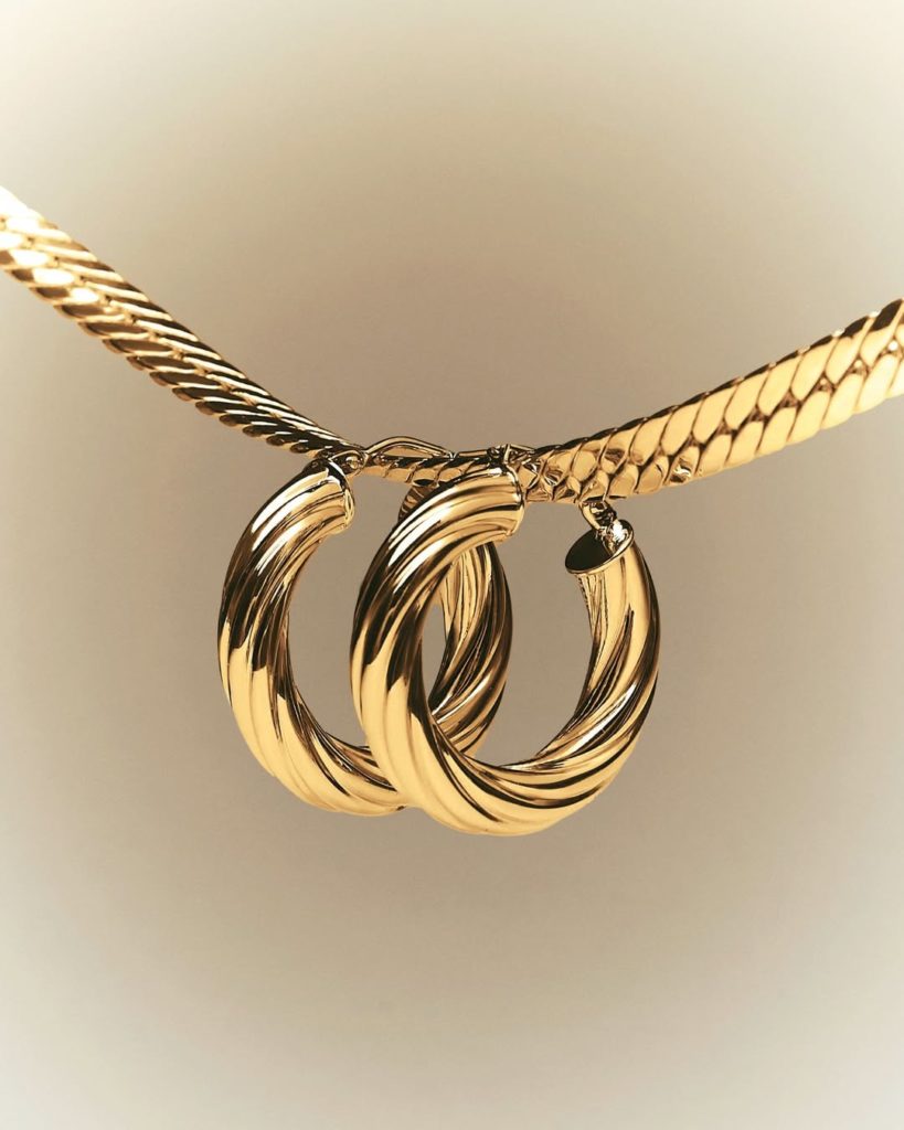 Zoom sur les créoles Yori et notre chaîne Izel en mailles anglaises. Des indispensables qui ne nous quittent plus