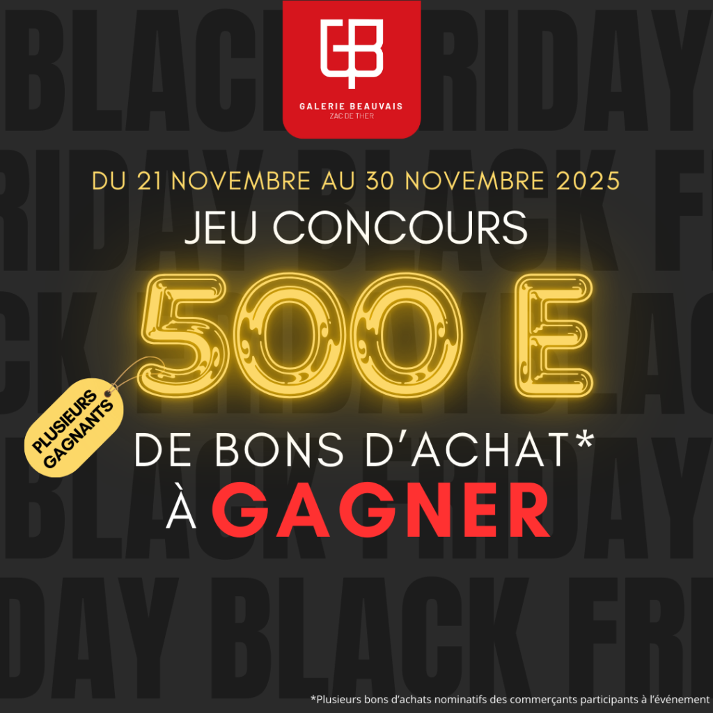 Pour le Black Friday de la Galerie d’Auchan Beauvais, c’est Noël avant l’heure, l’ensemble des commerçants vous gâtent et vous proposent de gagner des bons d’achat surprises dans les boutiques participantes.
